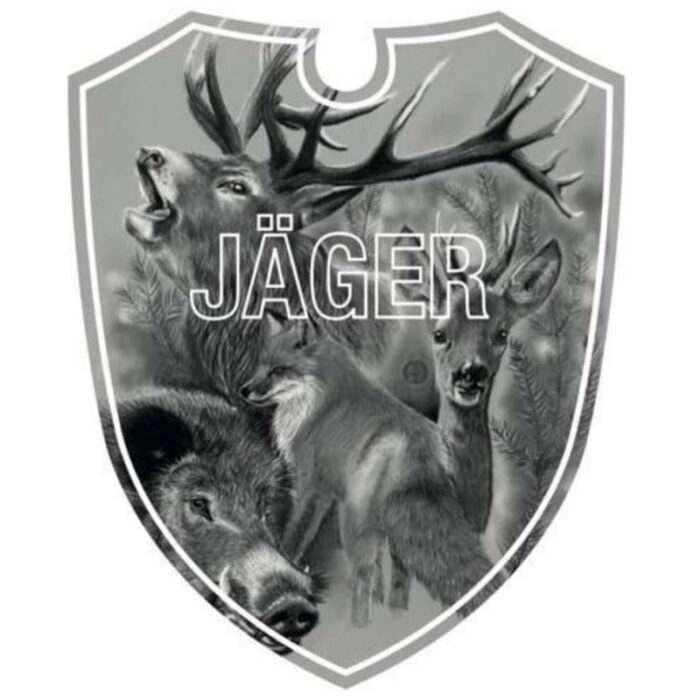Das KFZ Schild mit dem Aufdruck “Jäger” und dem passenden stilisierten Wild lässt jeden Jäger und Revierförster für andere Personen eindeutig erkennen. Durch die monochrome Farbgebung wirkt die Grafik besonders schön nostalgisch.