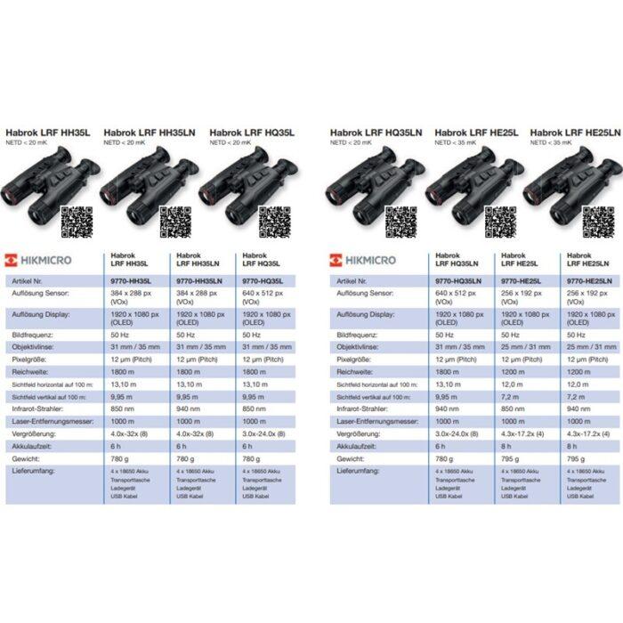 Die neue Hikmicro Habrok Produktserie sind kompakte Binokulare mit Nachtsicht- und Wärmebildfunktion. Sie können zudem als Tageslichtglas verwendet werden. Gleich eingebaut sind je nach Modell ein 850er oder 940er IR-Aufheller sowie ein Laser-Entfernungsmesser. Die HH Modelle lösen mit 384 x 288 Pixel auf, die HQ Modelle mit 640 x 512 Pixel. Die neueren HE Modelle verfügen über ein Nachtsichtmodul in 4K Auflösung. Die Ausstattung, wie vom Hikmicro Habrok 4K HE25L Nachtsicht und Wärmebild Fernglas ist bei allen identisch. Außerdem stehen WiFi und ein 64 GB Videorekorder zur Verfügung.