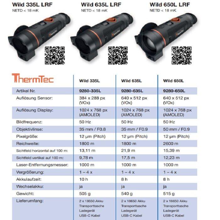 Das Wärmebildhandgerät Wild L (LRF) ist in verschiedenen Größen erhältlich. Die Modelle unterscheiden sich in der Größe der Optik, sprich im Durchmesser der Objektivlinse, Reichweite, Sensorauflösung und Sichtfeldweite. Die restliche Ausstattung und Software ist bei allen Varianten gleich. Die Baureihe ist identisch mit der Wild-Serie ohne “L”, verfügt aber noch über einen eingebauten Laser-Entfernungsmesser.
