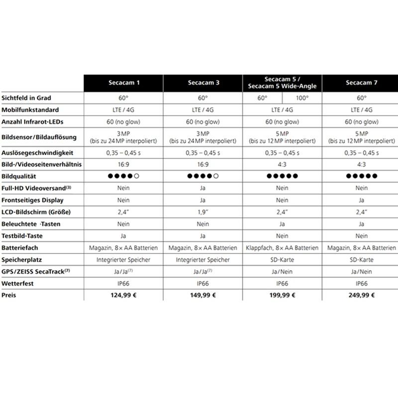 Mit der Zeiss Secacam 5 Wide-Angle profitieren Sie von einer herausragenden Bildqualität. Die Multi-Roaming-SIM ermöglicht schnelle Fotoversendungen. Dank des Infrarotblitzes und der 60 Black-LEDs nimmt die Kamera selbst bei völliger Dunkelheit scharfe Bilder auf, die für das menschliche Auge unsichtbar sind.